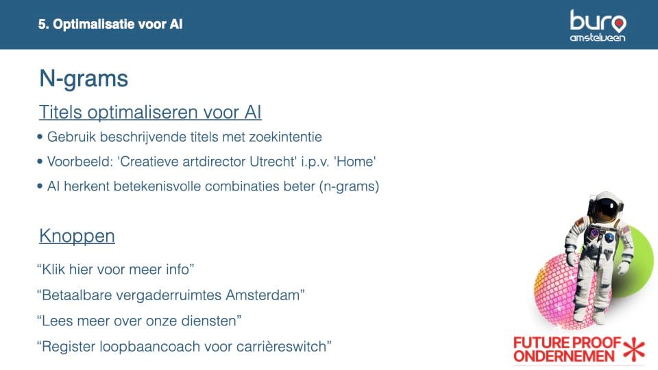 De wereld van SEO verandert razendsnel. Tijdens de workshop van Barry & Ruud doken deelnemers in de impact van AI op zoekgedrag, en leerden ze wat GEO (Generative Engine Optimization) en N-grams betekenen voor de toekomst van online vindbaarheid.